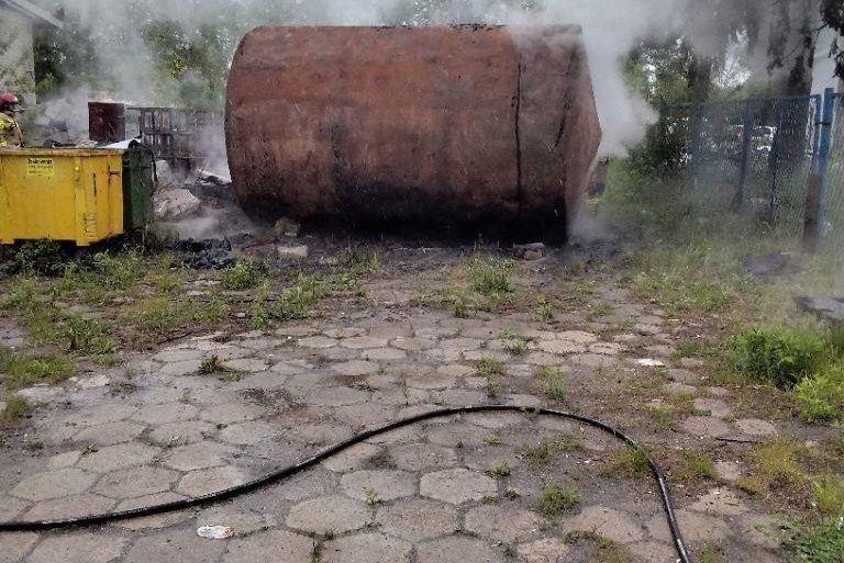 Zapalił się zbiornik po paliwie na ulicy Budowlanych
