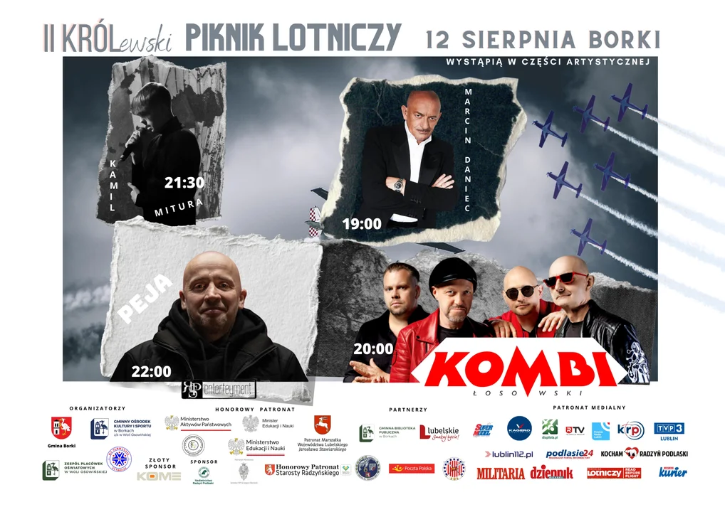 Gwiazdy lotnictwa na niebie, a na ziemi: wystawa statyczna samolotów, gdzie będzie można z bliska przyjrzeć się różnorodnym maszynom lotniczym. Konkurs modeli plastikowych i kartonowych na pewno zachwyci zarówno najmłodszych, jak i starszych z pasją do modelarstwa. - Niezapomniane wrażenia czekają także naszych najmłodszych gości. W specjalnej strefie dla dzieci przygotowaliśmy mnóstwo atrakcji, takich jak dmuchane zamki, gry i wiele innych rozrywek. Będzie to doskonała okazja dla waszych pociech do poznawania fascynującego świata lotnictwa i zaszczepienia w nich pasji do latania. Na KRÓLewskim Pikniku Lotniczym nie zabraknie również świetnej muzyki na żywo, która wzmocni atmosferę i zapewni wam niekończącą się rozrywkę. Koncerty znanych muzyków, takich jak Kombi Łosowski, Kamil Mitura czy Peja oraz występ Marcina Dańca, dostarczą rozrywki i zabawy po pokazach - zachęcają organizatorzy.