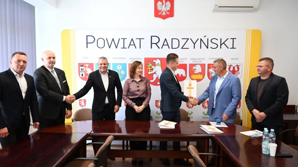 Porozumienie podpisali: Dyrektor Zarządu Dróg Powiatowych w Radzyniu Podlaskim Michał Zając wraz z Główną Księgową Edytą Nestorowicz oraz Prezes firmy Arpol, Arkadiusz Porzak.