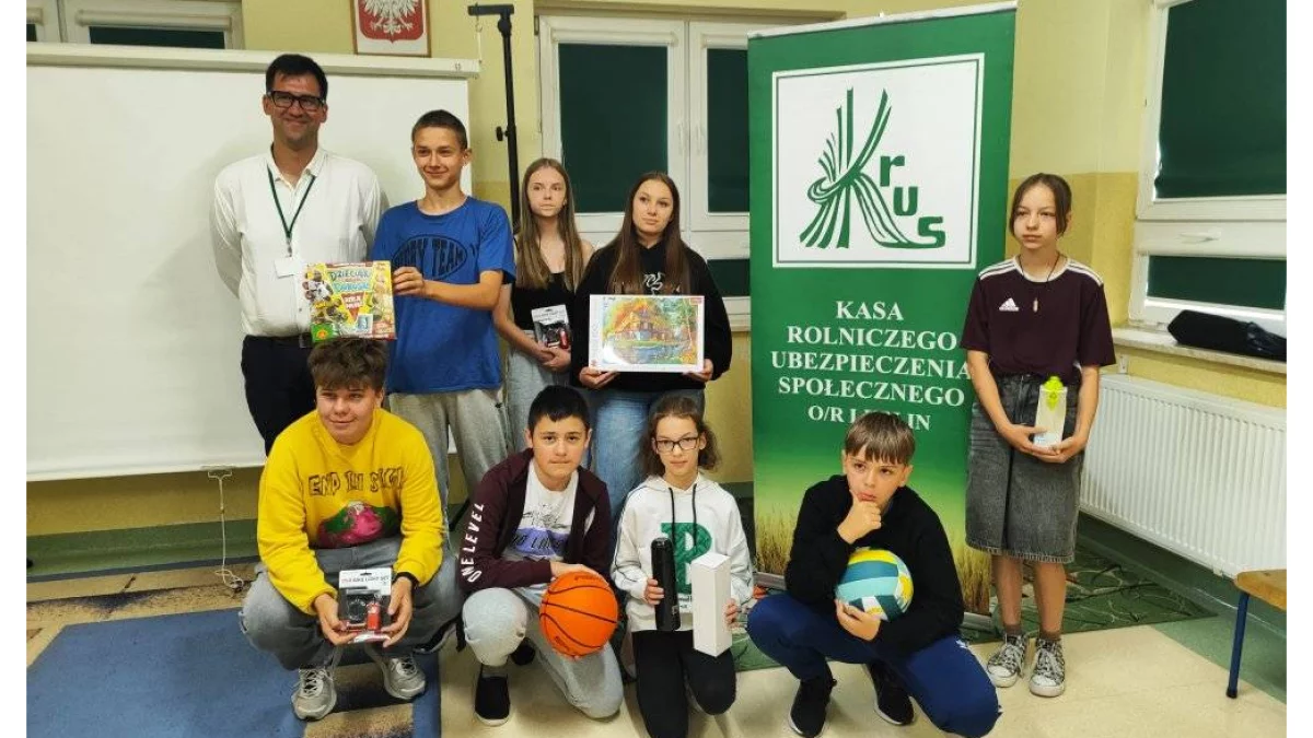 W piątek, 13 czerwca 2025 roku w Szkole Podstawowej w Domaszewnicy odbyło się spotkanie uczniów z przedstawicielami Kasy Rolniczego Ubezpieczenia Społecznego z placówki terenowej w Radzyniu Podlaskim. Głównym tematem wizyty było bezpieczeństwo dzieci podczas zabaw i prac na wsi.