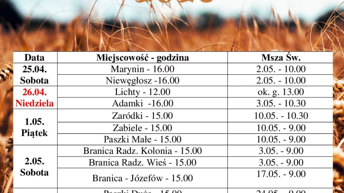 Uroczystości rozpoczną się już w sobotę, 25 kwietnia, i potrwają do połowy maja. Kapłani odwiedzą kolejne miejscowości, gdzie przy ołtarzach polowych odprawiane będą modlitwy i nabożeństwa.