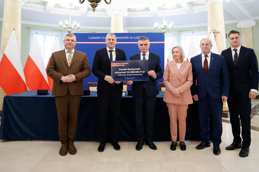 Odbiór symbolicznych czeków odbył się 14 listopada ( na fotografii ) w magistracie Lubelskiego Urzędu Wojewódzkiego w Lublinie. Powiat Radzyński reprezentowali: Starosta Radzyński Szczepan Niebrzegowski, Wicestarosta Michał Zając oraz Skarbnik Justyna Sałaj. W ceremonii uczestniczył Wojewoda Lubelski Lech Sprawka oraz Wicewojewodowie: Robert Gmitruczuk i Bolesław Gzik.