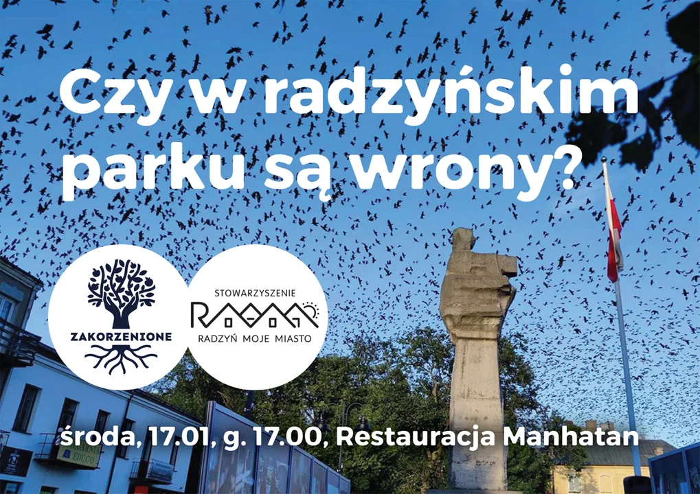 17 stycznia o 17:00 w restauracji Manhattan rozpocznie się spotkanie otwarte i opowieść o radzyńskich wronach. ędzie to kolejne spotkanie organizowane przez Stowarzyszenie Radzyń Moje Miasto w ramach projektu Zakorzenione. - Tradycyjnie po wykładzie zapraszamy na herbatę i słodki poczęstunek - zapraszają organizatorzy.