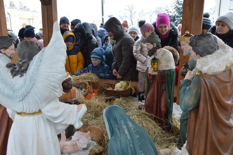 Informacje radzyńskieW radosnym i nawet bardzo odświętnym pochodzie, w bieli padającego śniegu, przemaszerował dzisiaj Królewski Orszak od świątyni Trójcy Świętej do placu Wolności, gdzie ustawiona jest stajenka. Święto rozpoczynała uroczysta msza św. połączona z błogosławieństwem kredy i kadzidła. Przy stajence życzenia świąteczne złożył w imieniu samorządów burmistrz Jerzy Rębek, proboszcz parafii ks. kan. Krzysztof Pawelce podziękował wszystkim za udział w pochodzie i żywe manifestowanie wiary katolickiej. Podziękował szczególnie gospodarzom z Białej, państwu Ochniom, którzy uatrakcyjnili stajenkę żywymi zwierzętami: kózkami, osłem i królikami. Chórowi Parafialnemu za prowadzenie wspólnego kolędowania. I przypomniał, że jutro o godz. 17 rozpocznie się wyjątkowego spotkanie, na które zaproszeni są pielgrzymi z każdego pokolenia z dawnej radzyńskiej "15" i radzyńsko - komarowskiej "13" - stki.