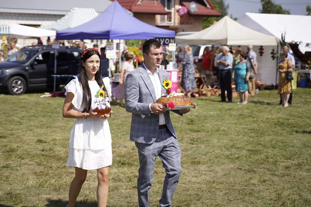 Po wprowadzeniu przez organizatorów Starostowie dożynek, Ewelina i Piotr Magierowie z Kolembród przekazali chleb i miód na ręce Starosty Radzyńskiego oraz Wójta Gminy Komarówka Podlaska. Potem rozpoczął się tradycyjny obrzęd dzielenia chleba oraz prezentacje wieńców wraz z przygotowanymi wystąpieniami artystycznymi. Następnie do mównicy zaproszono gości w osobach: Głównego Doradcy Politycznego Wicepremiera RP Piotra Rycerskiego, Wicewojewody Lubelskiego Roberta Gmitruczuka, Przewodniczącego Sejmiku Województwa Lubelskiego Jerzego Szwaja oraz Kierownika Filii Urzędu Marszałkowskiego Województwa Lubelskiego w Białej Podlaskiej Dariusza Litwiniuka. – W dniu dożynkowego święta proszę przyjąć serdeczne słowa uznania dla państwa wysiłków. Dzięki państwu Polska żywność jest znakomitą wizytówką możliwości gospodarczych naszej Ojczyzny. Szczególnie dziękuję wszystkim lubelskim rolnikom za całoroczny trud, za sumienność i wytrwałość z jaką wykonują państwo swoją ciężką pracę – odczytał list od Ministra Aktywów Państwowych Jacka Sasina Piotr Rycerski, Szef Gabinetu Politycznego Wiceprezesa Rady Ministrów. – „Bóg pobłogosławił, ziemia plon wydała”. Możemy powiedzieć, że dobro wraca do ludzi, którzy je okazali, bo kiedy słyszymy, że susza pustoszy gospodarstwa w Niemczech, Francji czy Hiszpanii, w naszym kraju plony są bardzo dobre. To pokazuje, że nie zabraknie chleba na polskich stołach, zarówno naszym rodakom jak i ludziom do których Polacy wyciągnęli pomocną dłoń i okazali dobro – mówił Wicewojewoda Robert Gmitruczuk.