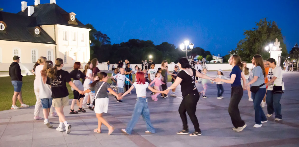 Od godziny 19:30 dziedziniec tętnił rytmem najlepszych tanecznych hitów. Mieszkańcy, młodsi i starsi, tłumnie przybyli na zaproszenie MOSiR-u oraz ROK-u, by wspólnie rozruszać się pod letnim niebem. Było kolorowo, radośnie i totalnie klimatycznie – światełka, uśmiechy i tupot nóg unosiły się w powietrzu!