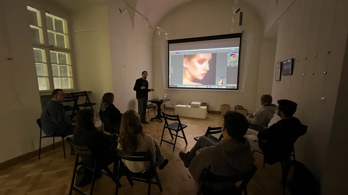 Warsztaty poprowadził Michał Sierpień, który w przystępny sposób wyjaśniał zagadnienia związane z edycją fotografii. W trakcie spotkania omówiono m.in. pojęcia takie jak separacja częstotliwości, maski oraz warstwy, a także praktyczne metody radzenia sobie z retuszem zdjęć.