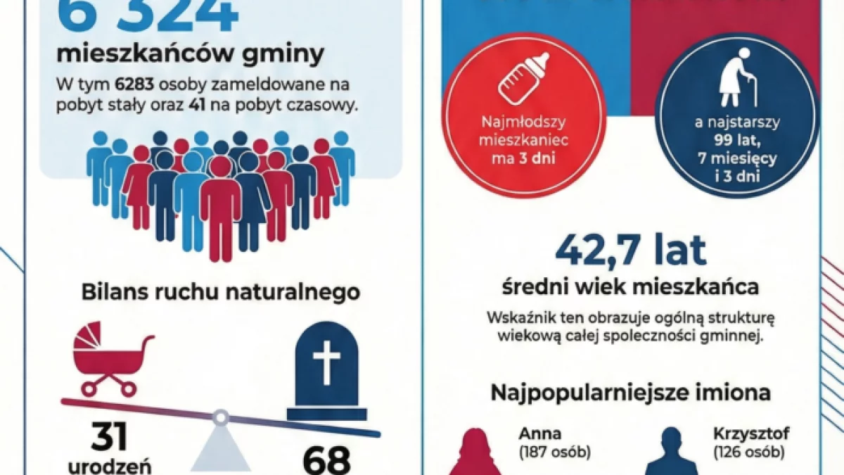 Przedstawione dane podkreślają wyzwania, przed którymi stoi gmina: ujemny przyrost naturalny oraz rosnący średni wiek mieszkańców.