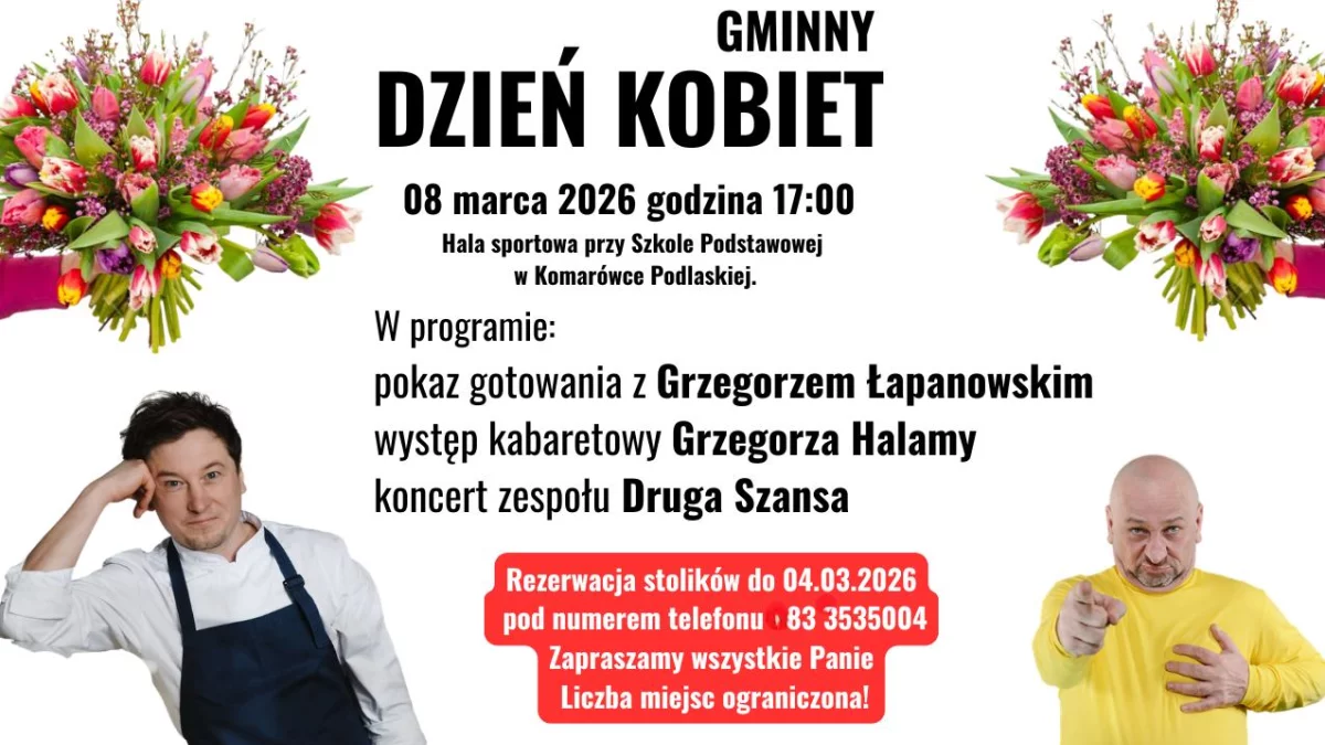 Liczba miejsc jest ograniczona. Rezerwacji stolików można dokonywać do 4 marca pod numerem telefonu 83 353 50 04. Wstęp na wydarzenie jest bezpłatny.