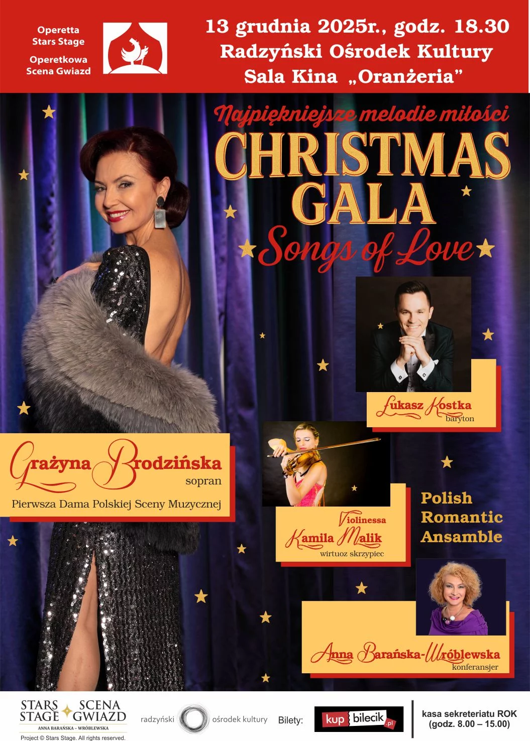 Koncert odbędzie się 13 grudnia 2025 roku (sobota) o godz. 18:30 w sali kina „Oranżeria” Radzyńskiego Ośrodka Kultury.