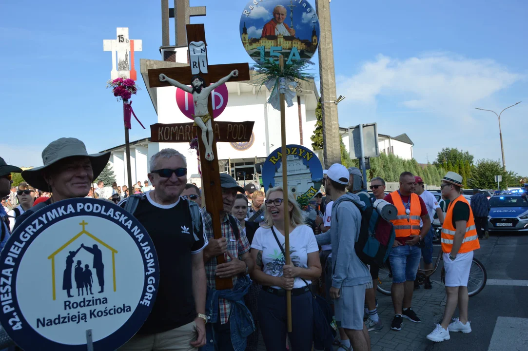 Poranna msza św. została odprawiona o godz. 6. Błogosławieństwa pielgrzymom udzielali kapłani, którym przewodniczył radzyński dziekan ks. kan. Krzysztof Pawelec oraz nowy proboszcz i kustosz sanktuarium ks. kan. Jarosław Sutryk, też pielgrzym, który nie raz zatrzymywał się na pątniczym szlaku właśnie w Radzyniu. Długą kolumnę pątników odprowadzali bliscy, przyjaciele, osoby, które od lat otwierają drzwi swoich domów i zapraszają pielgrzymów na nocleg. Wśród nich są także ci, którzy specjalnie wzięli urlop, by chociaż jednego dnia towarzyszyć im w drodze i odprowadzić na pierwszej stacji, czyli Przytoczna. Przed pątnikami 350 km do pokonania i dwa tygodnie rekolekcji w drodze na Jasną Górę. Nie straszna im pogoda i trud, który przed nimi. Kiedy wyruszali spod sanktuarium słychać było słowa: - Módlcie się za nas, my będziemy się modlić za was!