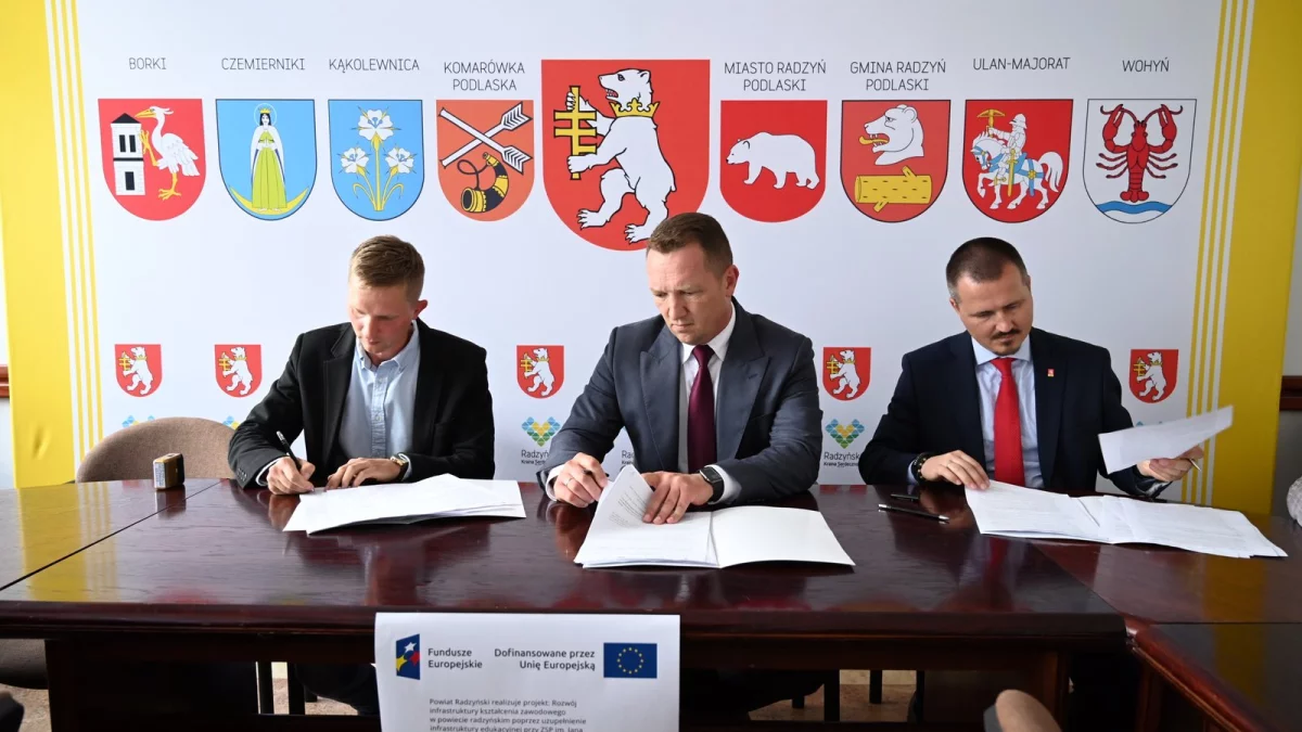 W piątek, 27 czerwca w Starostwie Powiatowym w Radzyniu Podlaskim podpisano umowę na realizację pierwszego etapu budowy boiska wielofunkcyjnego wraz z infrastrukturą towarzyszącą przy Zespole Szkół Ponadpodstawowych im. Jana Pawła II. Inwestycja stanowi część większego projektu prowadzonego przez Powiat Radzyński w ramach programu Fundusze Europejskie dla Lubelskiego 2021–2027.