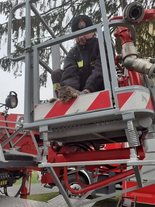 Kąkolewnica: Na ratunek... kotu. Strażacy OSP Kąkolewnica i JRG Radzyń z niecodziennym wezwaniem