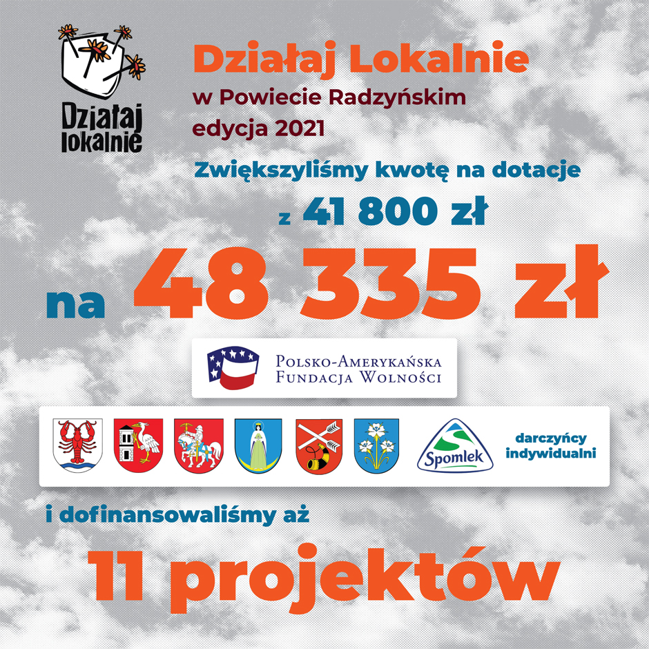 "Działaj Lokalnie" to program Polsko-Amerykańskiej Fundacji Wolności i Akademii Rozwoju Filantropii w Polsce, który na terenie powiatu radzyńskiego prowadzi Fundacja Akcja Działa.