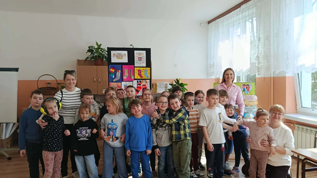 Podczas warsztatów plastycznych dzieci tworzyły kolorowe skarpetki – symbol tego dnia. Wykorzystano różnorodne materiały sensoryczne i plastyczne, dzięki czemu każda praca była wyjątkowa i pełna indywidualnego charakteru. Nie zabrakło także wspólnych zdjęć w fotobudce, które stały się pamiątką tego spotkania.
