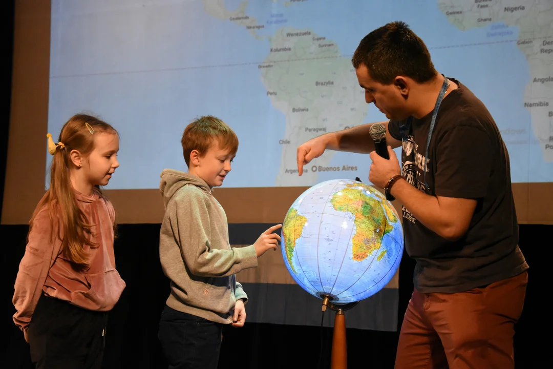 „Opowieść o Argentynie” zaadresowana była do uczniów z klas I-III. Podczas niej Mateusz Chołody przybliżył najważniejsze informacje dotyczące tego państwa, m.in. położenie geograficzne, historię, klimat, świat roślin i zwierząt, legendy, zabytki oraz kulturę. Opowiedział też o swoich wrażeniach i przeżyciach z wypraw do Argentyny. Duże zainteresowanie wśród uczestników wzbudziły przywiezione przez podróżnika pamiątki, były też ciekawe filmiki. Niewątpliwą atrakcją spotkania były krótki kurs tanga argentyńskiego. „Kraina nad wielkim Nilem” to temat lekcji przeznaczonej dla klas IV-VIII.