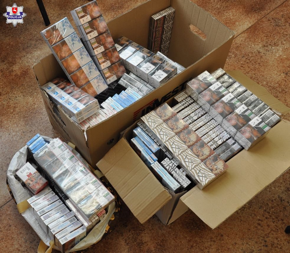 W piątek (22 stycznia) policjanci Zespołu do Walki z Korupcją i Przestępczością Gospodarczą radzyńskiej komendy wspólnie z funkcjonariuszami Działu Kontroli Celno-Skarbowej Rynku Delegatury Lubelskiego Urzędu Celno-Skarbowego w Białej Podlaskiej zatrzymali 31-latka. Mężczyzna na widok funkcjonariuszy posiadaną torbę podróżną wrzucił na dach, a plecak odrzucił od siebie. W torbie i plecaku funkcjonariusze znaleźli 350 paczek papierosów bez polskich znaków akcyzy.