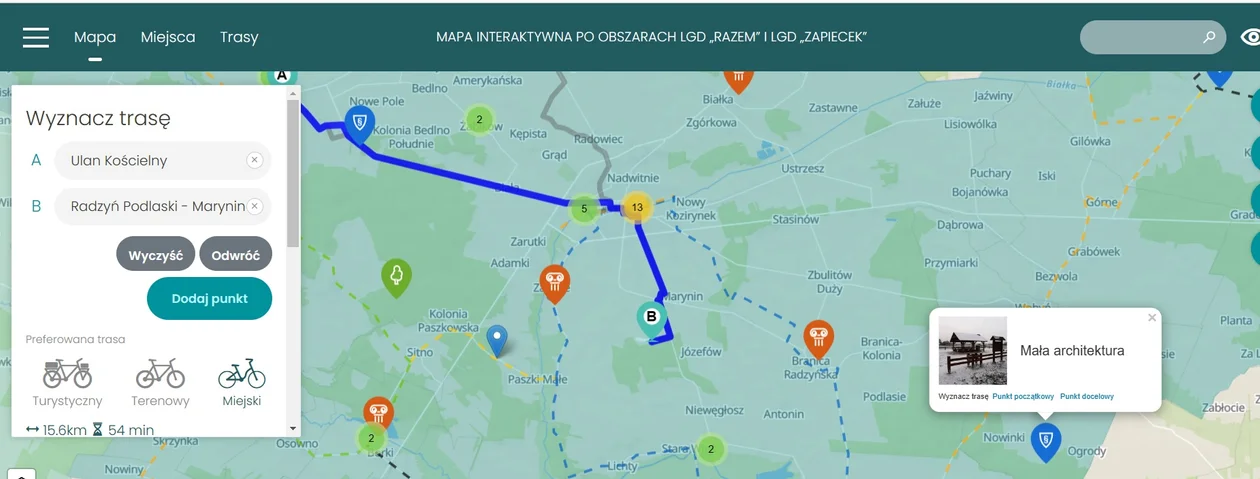 Na stronie internetowej LGD ZAPIECEK można już skorzystać z interaktywnej mapy, na której odnajdziemy propozycje szklaków rowerowych i atrakcje po drodze . mapa jest dostępna na stronie https://lgdrazemzapiecek.treespot.pl/
