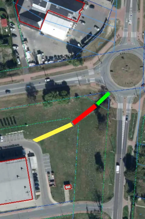 Na fotografii: Oznaczenia terenów na mapce geodezyjnej: ŻÓŁTY – własność prywatnego przedsiębiorcy CZERWONY – własność miasta ZIELONY – własność Zarządu Dróg Wojewódzkich w Lublinie