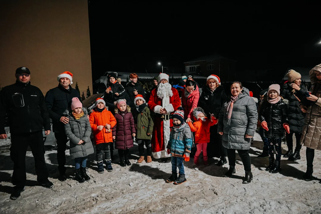 Aby skrócić oczekiwanie na przybycie„brodatego gościa” dzieci, wraz ze swoimi rodzicami, obejrzały bajkę pt. „Kraina lodu. Przygoda Olafa” oraz wykonały rysunkowy portret Mikołaja. W sali piętro niżej można było wziąć udział w warsztatach kulinarnych, na których dzieciaki wykonywały słodkie, czekoladowe lizaki. W końcu przybył wyglądany z niecierpliwością „brodacz” w czerwonym stroju. Towarzyszyli mu pomocnicy: Elf (Tomasz Jurkiewicz – Wójt Gminy Wohyń) oraz Śnieżynka (Agnieszka Buch – Sekretarz Gminy Wohyń). Mikołaj w asyście mikołajowych pomocników rozdał wszystkim dzieciom upominki. Każdy, czy to mały, czy to duży, mógł zrobić sobie zdjęcie ze Świętym. Na tym lista przygotowanych niespodzianek na ten wieczór nie zakończyła się. Po „pstryknięciu” ostatniego zdjęcia wszyscy ubrali się i wyszli pod pomnik, gdzie stała choinka ale jakaś taka smutna. Dzieci wspólnie ze Świętym Mikołajem, jego pomocnikami i rodzicami dokonali symbolicznego „rozświecenia” choinki, która rozbłysła tysiącem światełek. Od razu zrobiło się jakby cieplej i weselej, a w powietrzu czuć było magię zbliżających się świąt. Dziękujemy Ci Święty Mikołaju i Wam Pomocnicy Mikołaja! Do zobaczenia w przyszłym roku!