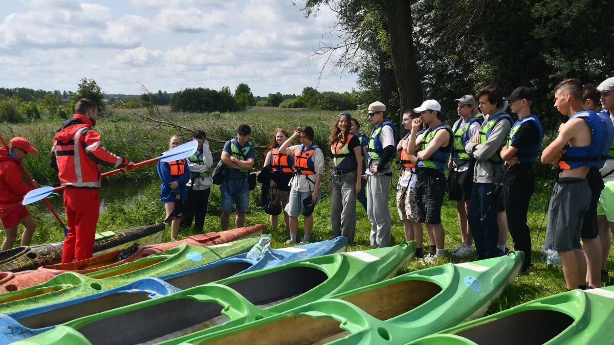 Kajakowe manewry wymagały od młodzieży współpracy, koordynacji i dobrej zabawy, a śmiechu nie brakowało. W trakcie spływu uczestnicy obserwowali bociany, motyle i jaskółki.