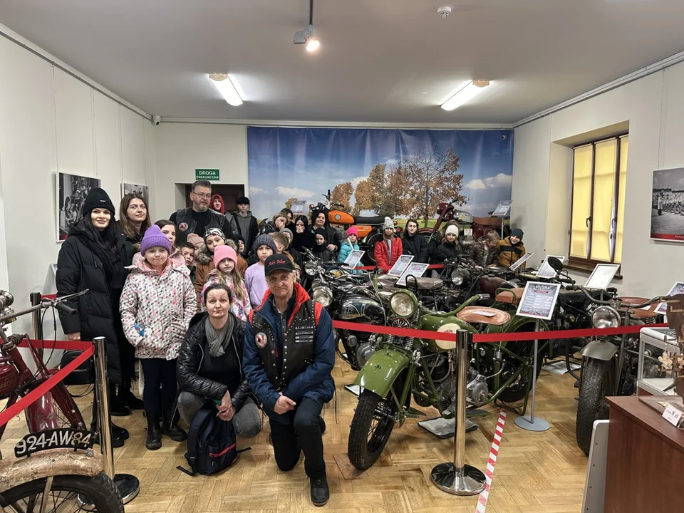 Tuż po przyjeździe do naszego hotelu „Eternity” w Wólce Nadburznej, zostaliśmy ciepło powitani przez przemiłą właścicielkę wraz ze swoim zespołem. Wspaniały kompleks, z niesamowitym klimatem, położony w środku lasu nad samą rzeką Bug, pomimo deszczowej pogody pierwszego dnia, oferował naprawdę wiele. Do dyspozycji mieliśmy kręgielnię, stoły bilardowe, cymbergaj oraz salonik telewizyjny. Każdego dnia dzieci miały możliwość korzystać także z wieczorków filmowych, organizowanych na dużym ekranie. To tylko przedsmak tego, co mieliśmy w planach, a trochę tego było. Rozpoczęliśmy od ogniska i wspólnych zabaw na terenie ośrodka. Drugi dzień był dniem typowo wyjazdowym. W pierwszej kolejności udaliśmy się do Ośrodka Edukacji Ekologicznej „Puszczyk” w Drohiczynie. Nasi młodzi przyjaciele z wielką uwagą słuchali ptasich treli, oglądali wystawę piór i sprawdzali się w quizie na temat nadbużańskiej przyrody. Kolejne atrakcje to wirtualne łowienie ryb czy również wirtualna przejażdżka rowerowa brzegiem Bugu w okularach VR. Nie bylibyśmy sobą, gdybyśmy nie przemycili troszkę naszej pasji – motocykli. Dosłownie kilka kroków dalej znajdowało się muzeum starych motocykli, które obejmuje ponad 50 eksponatów pochodzących z Polski i innych krajów Europy. Niektóre z wystawionych sprzętów przeszły remont, a inne zostały zachowane w oryginalnym stanie. Obecnie najstarszym motocyklem jest francuski ARMOR z 1914 roku, zaś największą perełką przyciągającą uwagę wszystkich zwiedzających, jest bardzo rzadko spotykany polski motocykl - Sokół 1000. Kolejną atrakcją był wyjazd na basen, z którego dzieci nie chciały wychodzić. Szaleństw i korzystania z atrakcji obiektu nie było końca. Wszystko co dobre, niestety szybko się kończy. Niedziela była dniem powrotu do domu. Jednak zanim pożegnaliśmy nasz wspaniały ośrodek, odwiedziliśmy jeszcze Pana Jerzego, który w niedalekiej odległości od Siemiatycz wybudował własnoręcznie zamek z zebranych na polu kamieni. Imponująca budowla powstawała w ciągu 18 lat, ale jak się dowiedzieliśmy, prace nieustannie trwają, bo w głowie właściciela twierdzy jest jeszcze mnóstwo pomysłów. W tym miejscu chcieliśmy jeszcze raz serdecznie podziękować wszystkim, którzy czynnie włączyli się w naszą zeszłoroczną akcję Motomikołajki 2023. To dzięki Wam dzieciaki miały możliwość miło spędzić czas i skorzystać z przygotowanych atrakcji. Dziękujemy Prezesowi radzyńskiego PKSu Adamowi Frączkowi, który udostępnił nam autokar z wielkim rabatem (uśmiech). Nie zapominamy też o Panu kierowcy, który woził nas wszędzie, gdzie chcieliśmy akceptując bez mrugnięcia okiem nasze krzyki, a czasem i śpiewy (uśmiech) nie koniecznie trafiające w ucho. Dziękujemy ciociom: Paulinie, Grażynie, Katarzynie i Paulinie, które dzieliły z nami trud opieki nad rozbrykaną gromadką. Na koniec serdeczne podziękowania kierujemy do Pana Andrzeja Marcinkowskiego, który z chirurgiczną precyzją przygotował nam ten wyjazd wraz ze wszystkimi atrakcjami. Gdyby nie on, to jak mawiał klasyk, nie byłoby niczego (uśmiech). Po powrocie, wiele osób pytało nas: jak wycieczka, dzieci zadowolone? Niech odpowiedzią będzie pytanie zadane nam przez naszych młodych przyjaciół, kiedy pakowaliśmy walizki i szykowaliśmy się do powrotu do domu: „czemu już musimy wracać? Nie możemy jeszcze zostać na tydzień”? Pozdrawiamy i do zobaczenia w grudniu albo gdzieś na drodze. LWG!