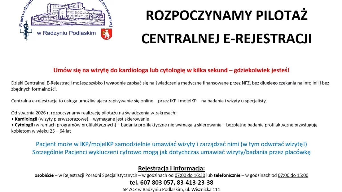 Jak informuje placówka, pacjenci korzystający z IKP i aplikacji mojeIKP będą mogli nie tylko zapisać się na wizytę, ale także zarządzać terminami, w tym je odwoływać. Jednocześnie osoby wykluczone cyfrowo nadal będą mogły zapisywać się na badania i wizyty w dotychczasowy sposób, bezpośrednio przez placówkę.