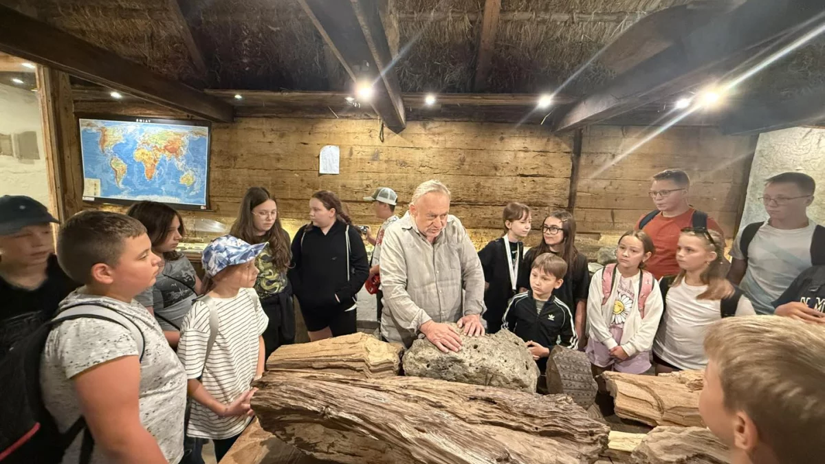 Na miejscu grupę przywitał gospodarz, który z ogromną pasją opowiadał o dawnym życiu mieszkańców wsi – ich pracy, codziennych obowiązkach i zwyczajach, jakie przez pokolenia kształtowały lokalną kulturę. Dla wielu uczestników była to wyjątkowa lekcja historii, pozwalająca lepiej zrozumieć, jak wyglądało życie na Roztoczu przed laty.