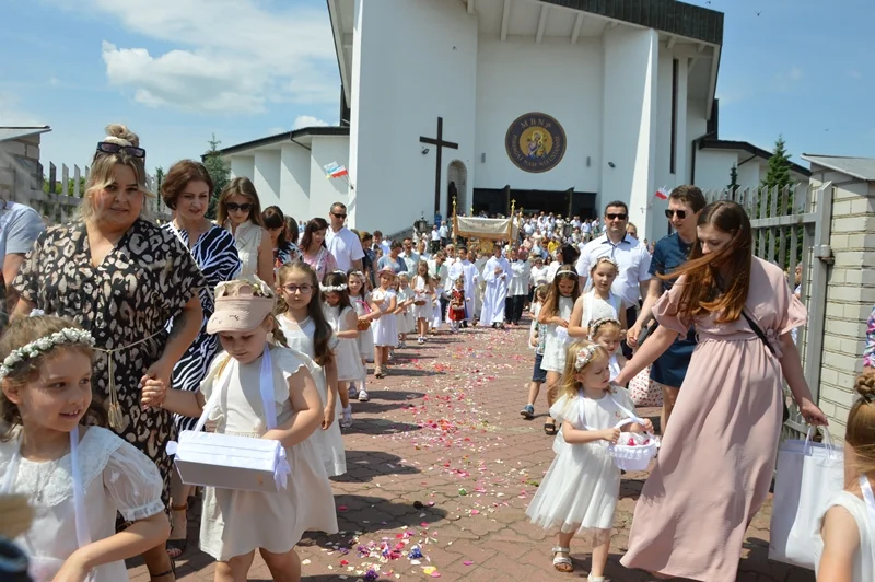 Informacje radzyńskiePo raz 707 Uroczystość Najświętszego Ciała i Krwi Chrystusa, zwane powszechnie Bożym Ciałem jest czczona przez katolików. W każdej ze świątyń jest organizowana procesja po ulicach miast do czterech ołtarzy. Czytane są przy nich fragmenty Ewangelii : św. Marka, św. Mateusza, św. Łukasza i św. Jana. Cztery ołtarze podczas procesji mają przypominać też cztery strony świata. W radzyńskim Sanktuarium MBNP homilię podczas mszy św. wygłosił ks. Grzegorz, który w pięknym kazaniu nakłaniał do jak najczęstszego, osobistego spotykania się z Bogiem w cichej modlitwie. Z niej rodzą się powołania do świętości. - Niechaj Cię przyjmę, aby żadna ściana , Ni tchnienie między nami już nie stało - przywołał słowa wiersza. - Tyś, który jest. Tyś, który był. I który będziesz.