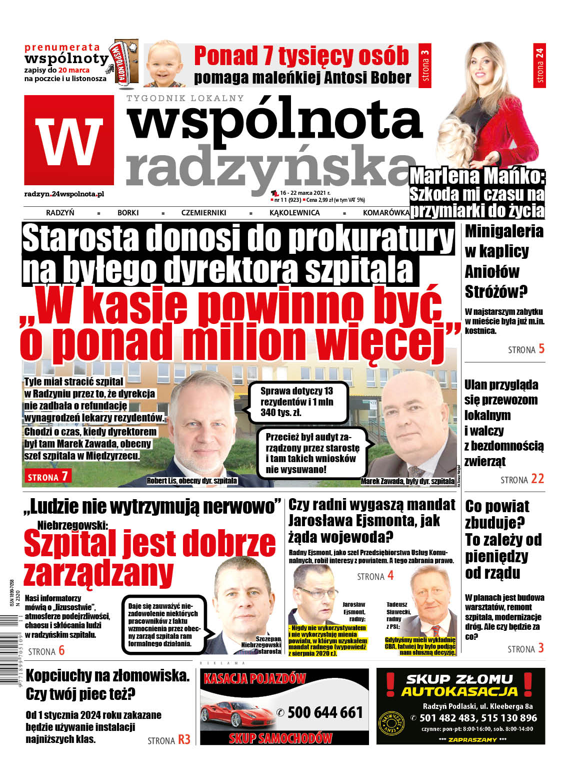 W imieniu Zarządu Powiatu Radzyńskiego starosta Szczepan Niebrzegowski złożył w ubiegłym tygodniu doniesienie do prokuratury. Dotyczy ono możliwości popełnienia przestępstwa przez poprzednią dyrekcję szpitala. Miałoby ono polegać na niedopełnieniu obowiązków, w tym w zakresie nadzoru i kontroli.