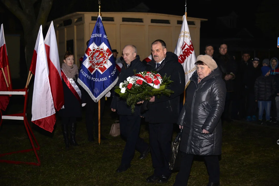 Po mszy św. uczestnicy obchodów przeszli przed budynek, gdzie w latach 1939-44 znajdował się areszt śledczy Gestapo, a w latach 1944-56 – Powiatowego Urzędu Bezpieczeństwa Publicznego. Obecnie jest to Izba Pamięci „Warszawska 5a”. Przybyłych powitał Burmistrz Radzynia Jerzy Rębek.- Jesteśmy w miejscu kaźni polskich bohaterów w dniu szczególnym dla całego naszego narodu. Od niedawna w tak uroczysty sposób możemy czcić ich pamięć – podkreślił Włodarz Miasta i powitał przybyłych, wśród których byli: Senator RP Grzegorz Bierecki, Poseł na Sejm RP Dariusz Stefaniuk, Wicewojewoda Lubelski Robert Gmitruczuk, przewodniczący Sejmiku Województwa Lubelskiego Jerzy Szwaj, Starosta Radzyński Szczepan Niebrzegowski, Przewodniczący Rady Powiatu Robert Mazurek, Przewodniczący Rady Miasta Adam Adamski, Wójt Gminy Borki płk. Radosław Sałata - Prezes Inspektoratu Stowarzyszenia Wolność i Niezawisłość w Radzyniu, Wicewójt Gminy Radzyń Anna Grochoła, Wójt Gminy Wohyń Tomasz Jurkiewicz, Dyrektorki radzyńskich szkół ponadpodstawowych Grażyna Dzida oraz Ewa Grodzka, a także mieszkańcy miasta. Uroczystość uświetniła obecność pocztów sztandarowych Stowarzyszenia WiN oraz NSZZ „Solidarność”.