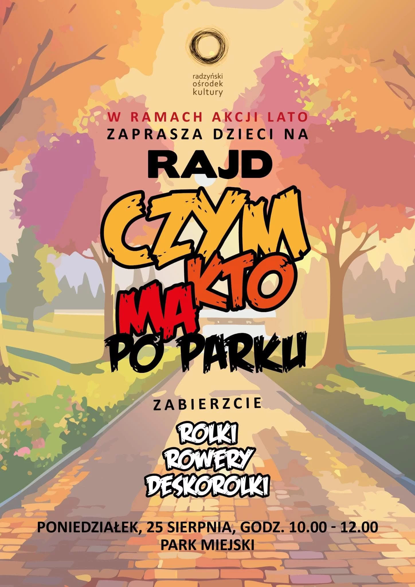Informacje radzyńskieW ramach letnich akcji z Radzyńskim Ośrodkiem Kultury najmłodsi mieszkańcy Radzynia będą mogli wziąć udział w wyjątkowej zabawie na świeżym powietrzu. Już w poniedziałek, 25 sierpnia, w godz. 10:00–12:00 w Parku Miejskim odbędzie się rajd pod hasłem „Czym kto ma”