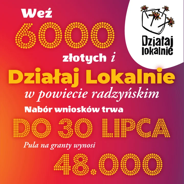 "Działaj Lokalnie" to mikrogranty do 6000 złotych, które można przeznaczyć dla dobra wspólnego lokalnej społeczności. Jak? To tylko kwestia pomysłu. Nabór poprzez internet właśnie ruszył i potrwa do 30 lipca. Wnioski składamy pod adresem genratorspoleczny.pl. Najistotniejsze jest, aby działania zgłaszane do dofinansowania służyły lokalnej społeczności, były otwarte i trwały minimum 3 miesiące, pomiędzy lipcem a grudniem 2023 roku. Wnioski mogą składać organizacje pozarządowe ale także grupy nieformalne z terenu całego powiatu radzyńskiego - tłumaczy koordynator programu na teren powiatu - Jakub Jakubowski. On też udziela informacji i pomaga w procesie składania wniosku. Kontakt pod numerem telefonu 606-618-341. Regulamin ze wszystkimi szczegółami znajduje się tu: tinyurl.com/dl2023-regulamin (QR code).