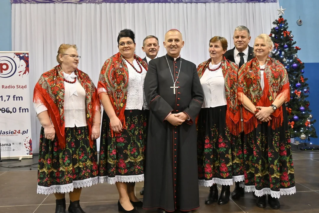 W imieniu Zarządu Powiatu Radzyńskiego dziękujemy za wybór naszego powiatu i chcę powiedzieć, że poprzez swoje jednostki, jaką jest największa szkoła w województwie lubelskim, Zespół Szkół Ponadpodstawowych im. Jana Pawła II w Radzyniu Podlaskim współpracujemy z kościołem katolickim. To w murach tej szkoły bywały takie osoby jak kardynał Stanisław Dziwisz, człowiek, który przez wiele lat był najbliżej naszego Papieża Św. Jana Pawła II – mówił Szczepan Niebrzegowski. Wydarzenie uświetniły występy uczniów ze Szkoły Podstawowej w Branicy Radzyńskiej, którzy zaprezentowali tradycyjne jasełka. Spotkanie było również okazją do wspólnego kolędowania i łamania się opłatkiem, co umocniło atmosferę świątecznego wspólnotowego ducha.