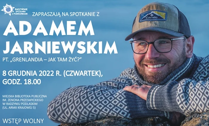 – Na Grenlandię przeprowadziłem się w 2006 roku i bardzo długo uczyłem się życia na tej wyspie. Kiedy przyjechałem jako absolwent poznańskiej germanistyki nie posiadałem praktycznie żadnych umiejętności przydatnych do w miarę normalnego funkcjonowania w miejscu tak różnym od tego, gdzie dorastałem. Nie miałem ani pracy, ani zielonego pojęcia co tam można robić. Wiedziałem za to, że wkrótce zostanę ojcem – mówi Adam Jarniewski. – Od tamtej pory wiele się wydarzyło. Chyba sporo się nauczyłem, oprócz czysto praktycznych rzeczy jak polowanie i przemieszczanie się po bezludziu, przekonałem się jak wielkie znaczenie ma szacunek do sił natury i doceniłem pozytywy ograniczonych wyborów – dodaje gość „Radzyńskich Spotkań z Podróżnikami”. – Spotkanie z Adamem Jarniewskim okraszone będzie licznymi fotografiami i filmami, które ukażą grenlandzką codzienność. Będzie to opowieść o życiu wśród Grenlandczyków, próbie asymilacji na największej wyspie świata i wyzwaniach, które czekały na podróżnika – dodaje Robert Mazurek, dyrektor Radzyńskiego Ośrodka Kultury.