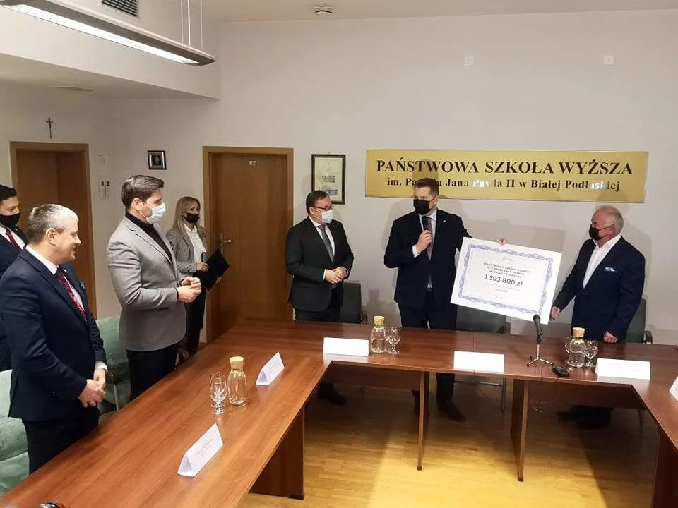 – Radzyń ma szanse stać się miastem akademickim, a absolwenci filii akademii z pewnością znajdą pracę w naszym szpitalu, gdzie kadra często już jest w wieku emerytalnym. Cieszę się, bo to dla naszego miasta ogromna szansa – powiedział starosta Szczepan Niebrzegowski. Parlamentarzyści podkreślili, że nie byłoby rozwoju bialskiej szkoły, gdyby nie ogromne zaangażowanie rządu. Na ręce ministra Czarnka złożyli podziękowania za środki, które uczelnia otrzymuje na inwestycje. O jednej z takich inwestycji poinformował dzisiaj sam minister, który przekazał czek o wartości 1 303 800 zł na uruchomienie w Radzyniu kierunku pielęgniarstwa.