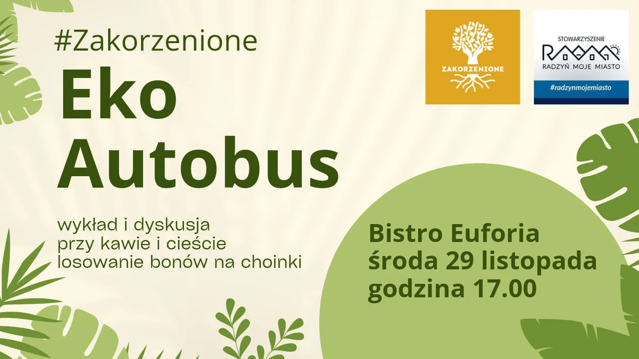 Informacje radzyńskieStowarzyszenie Radzyń Moje Miasto w imieniu koordynatorek projektu Zakorzenione, Natalii Granoszewskiej i Klaudii Szczygielskiej, zaprasza na drugie spotkanie w ramach programu. - Wypijmy razem kawę, zjedzmy ciasto i porozmawiajmy o eko-transporcie miejskim. Będziemy mieli też bony na choinkę - szczegóły na naszym profilu na Facebooku! - zachęcają kobiety. W środę 29 listopada o 17.00 w Bistro EUFORIA rozpocznie się otwarte dla wszystkich chętnych spotkanie dotyczące komunikacji miejskiej, problemie który coraz mocniej wybrzmiewa w Radzyniu. - Czy można realizować zadania transportu z poszanowaniem natury? Czy autobus miejski może być ekologiczny i ekonomiczny? Na te pytania odpowie specjalista, Artur Kuśmierzak. Po prezentacji członkinie stowarzyszenia zapraszają na dyskusję, w której wspólnie wyznaczone zostaną przystanki i trasy odpowiadające potrzebom mieszkańców.
