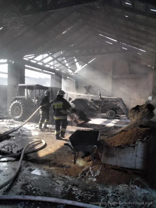 Strażacy walczą z ogniem w Grabowcu ( gm. Kąkolewnica). Zapalił się garaż, stodoła, obora, w której znajdowało się bydło, maszyny rolnicze