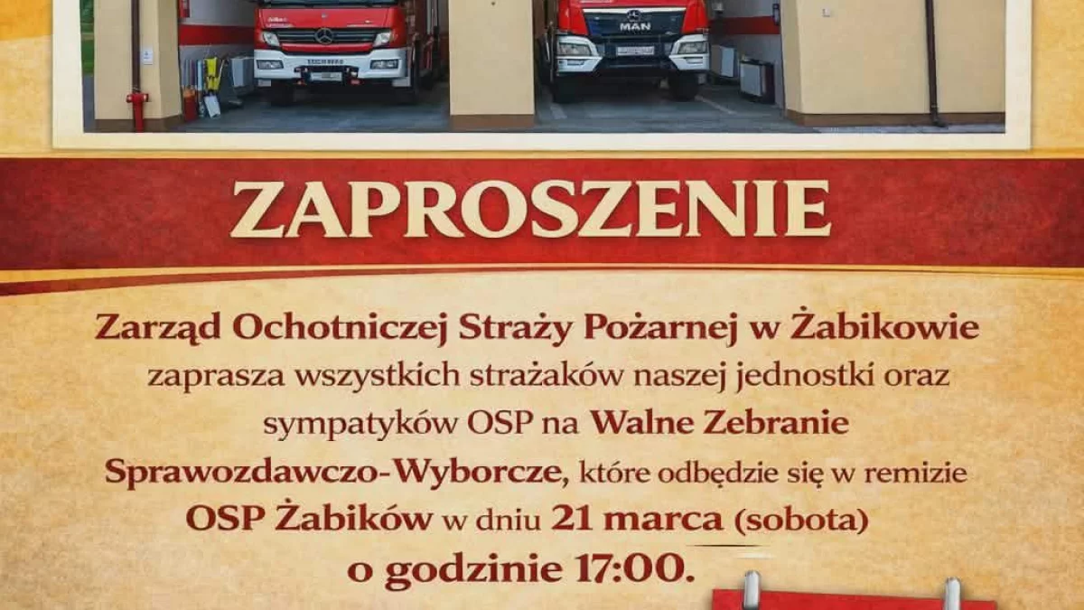 Zarząd OSP Żabików zachęca do udziału wszystkich strażaków oraz osoby wspierające działalność jednostki.