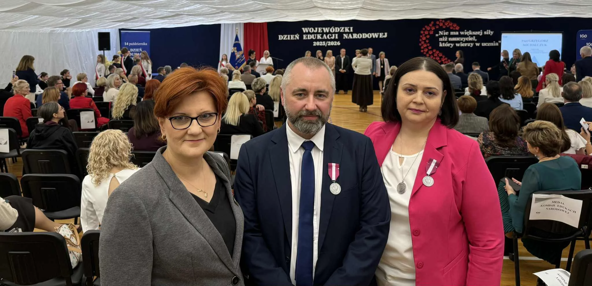 Paweł Iwańczuk oraz Katarzyna Skrzeczkowska odebrali Srebrne Medale za Długoletnią Służbę, natomiast Aneta Tomaszuk została uhonorowana Medalem Komisji Edukacji Narodowej.