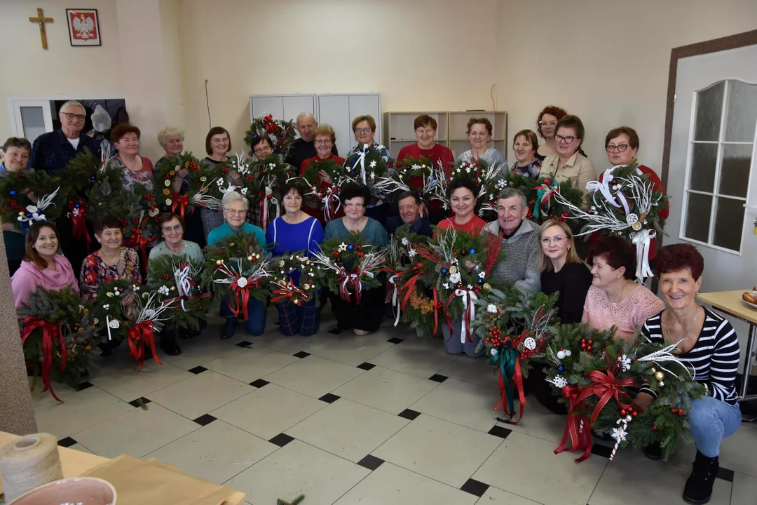 Warsztaty rozpoczęły się od chwili pełnej wzruszeń – wszyscy uczestnicy podzielili się opłatkiem, składając sobie nawzajem życzenia. Następnie, przy wspólnych stołach, seniorzy z zapałem przystąpili do pracy nad świątecznymi ozdobami. Nie zabrakło też mężczyzn, którzy doskonale poradzili sobie z wyzwaniem. Efektem warsztatów były piękne wieńce, które natychmiast znalazły swoje miejsca na drzwiach uczestników. Jeden z nich ozdobił wejście do urzędu gminy, wprowadzając świąteczną atmosferę także do przestrzeni publicznej.