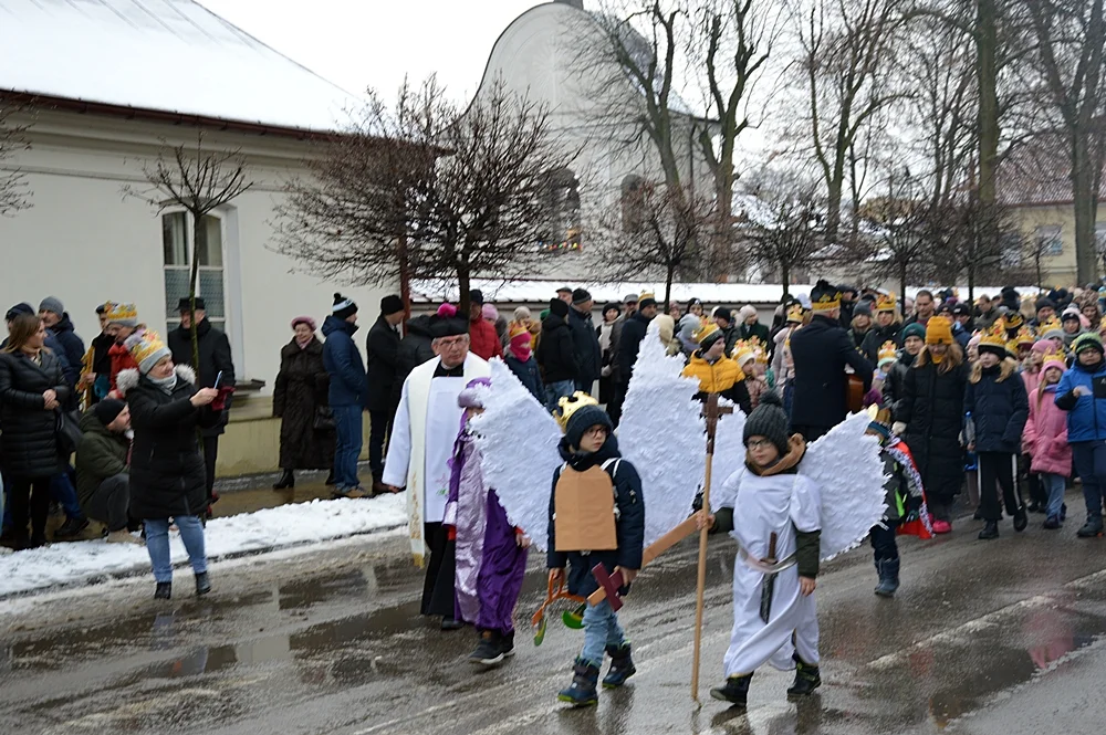 Informacje radzyńskieTradycyjnie radzyński Orszak Trzech Króli w uroczystość Objawienia Pańskiego wyrusza na główny plac miasta z kościoła Trójcy Świętej po zakończeniu Eucharystii i poświęceniu kredy i kadzidła. Te symboliczne znaki, są zabierane przez chrześcijan do domów by wyryć na drzwiach poświęconą kredą znaki K+M+B. W radosnym orszaku, na pamiątkę przybycia Mędrców do betlejemskiej stajenki i objawienia światu Narodzonego jako Króla nad królami, uczestniczyła w tym roku bardzo liczna gromada dzieci, a król Baltazar przybył na wielbłądzie o imieniu Staś. Na naszym koncie na FB jest zamieszczony film z przemarszu orszaku i kolędowania pod miejską szopką. Zachęcamy do odwiedzin.