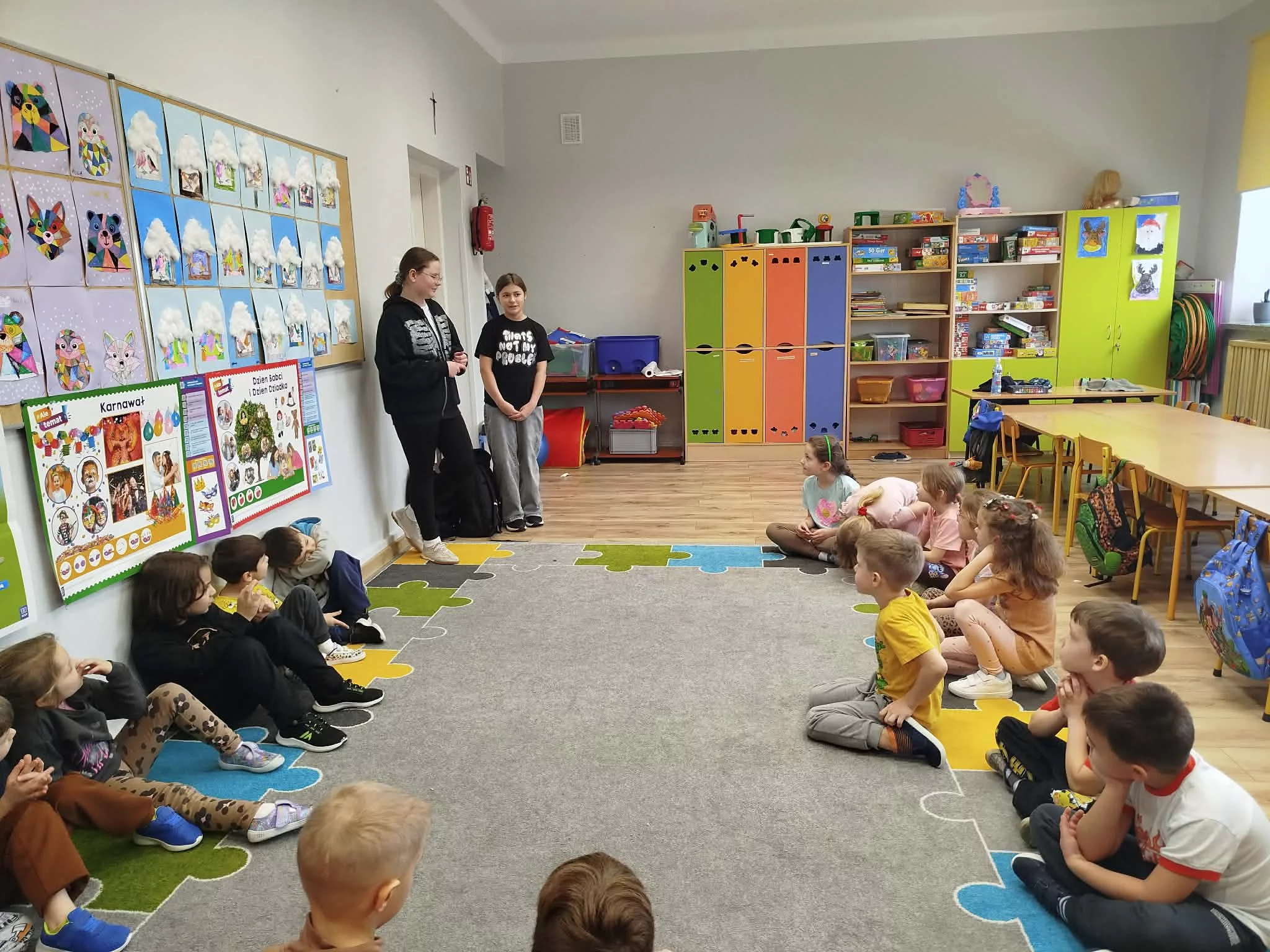 Starsze koleżanki samodzielnie przygotowały niezbędne materiały, a także zadbały o odpowiednie zabezpieczenia higieniczne. Podczas spotkania przeprowadziły część edukacyjną, przybliżając najmłodszym zasady pomocy zwierzętom w okresie zimowym, a następnie poprowadziły warsztaty praktyczne.