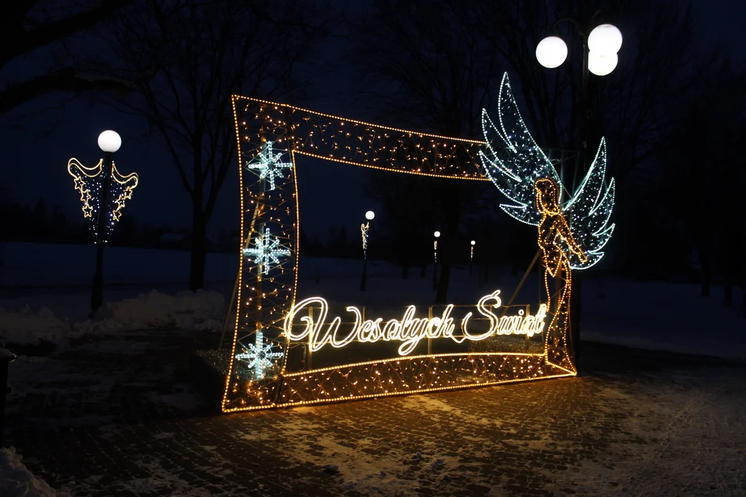 Jak informują władze gminy, iluminacje świąteczne będą dostępne dla mieszkańców przez okres świąteczny i znikną z parku w drugiej połowie stycznia.