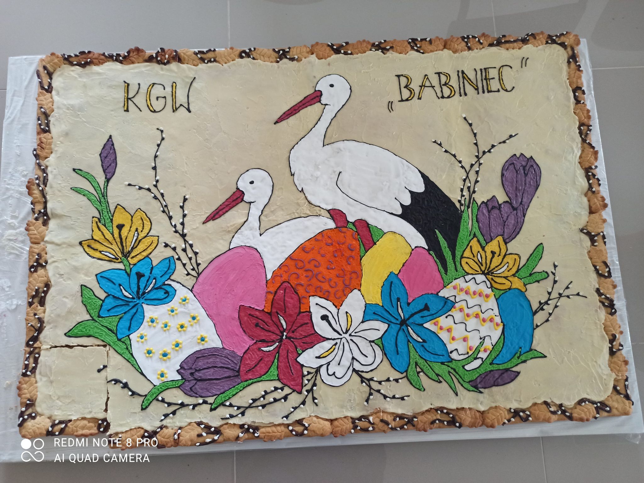 Anna Abramek, KGW Babiniec ze Stoczka: Mazurek przez nas upieczony i udekorowany został pokrojony i sprzedany z innymi wypiekami i dekoracjami wielkanocnymi na kiermaszu, z którego dochód przeznaczyłyśmy na leczenie serduszka Antosi Bober