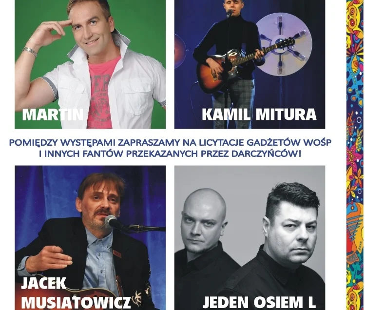 W godz. od 8.00 do 18.00 wypatrujcie wolontariuszy na ulicach Radzynia Podlaskiego i Powiatu Radzyńskiego. Ponadto ROK zaprasza na koncert, który rozpocznie się o godz. 15.00 w sali widowiskowo-kinowej przy ul. Jana Pawła II 4. Podczas niego zaprezentuje się m.in. Szkoła Tańca Pawła Jabłońskiego „Dance ma sens”. Ponadto z koncertami wystąpią: Martin, Kamil Mitura, Jacek Musiatowicz i zespół Jeden Osiem L. Pomiędzy występami odbędą się licytacje gadżetów WOŚP oraz fantów przekazanych przez darczyńców. Sztab 31. WOŚP zachęca też do wsparcia zbiórki przez wpłatę do eSKARBONKI Radzyńskiego Ośrodka Kultury – można to uczynić przez stronę: https://eskarbonka.wosp.org.pl/2xmlfv