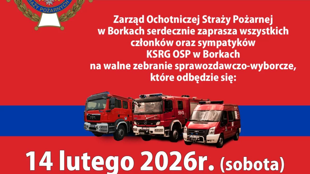 Spotkanie zaplanowano w remizie OSP w Borkach, a jego rozpoczęcie wyznaczono na godzinę 17:00. Jak informuje zarząd jednostki, zebranie będzie miało istotne znaczenie dla dalszego funkcjonowania straży, ponieważ poza podsumowaniem działalności za miniony okres przewidziane są również wybory władz OSP.