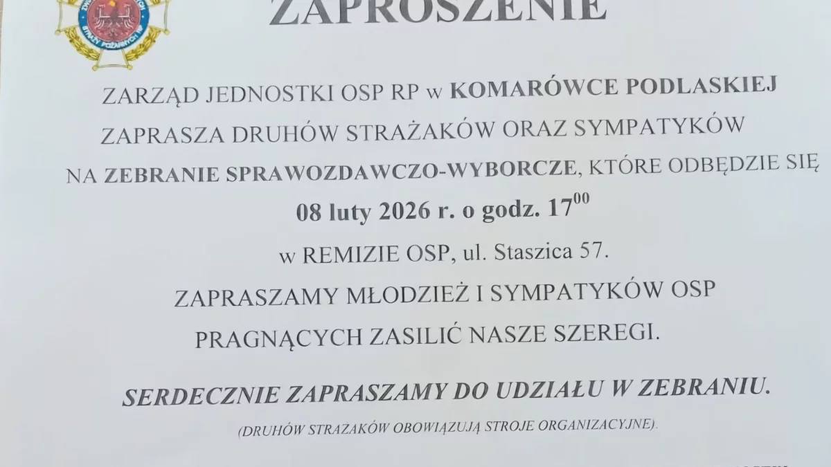 Podczas spotkania nastąpi podsumowanie działalności OSP w minionym okresie, a także przeprowadzone zostaną wybory do władz jednostki, które wyznaczą kierunki jej dalszego działania.