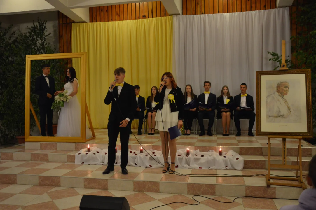 Grażyna Dzida, dyrektor Zespołu Szkół Ponadpodstawowych podkreśliła, że jest to ważny element nauczania. Podkreśliła, że tematem tegorocznej wieczornicy jest hasło ,,Miłość bez granic”. – W nauczaniu Jana Pawła II aspekt miłości był stale podkreślany, by miłować czynem, prawdą, troską o drugiego człowieka. W naszej szkole te prawdy zawarte są w programie wychowawczym.