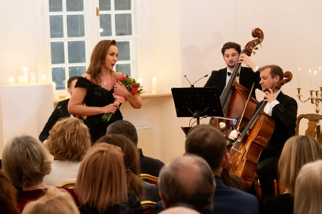 Wyjątkową atmosferę wieczoru zbudowała znakomita sopranistka Agnieszka Kadłubowska ( na fotogarfii) , której barwa głosu, interpretacja i charyzma sceniczna nadały każdemu utworowi głębię i emocjonalny wyraz. Towarzyszył jej kwintet smyczkowy Masovia, w którego skład wchodzą wybitni muzycy: Elżbieta Paliwoda-Bulicz i Emilia Walasek-Gorczyca (skrzypce), Tomasz Karwan (altówka), Jakub Pożyczka (wiolonczela) oraz Piotr Kochel (kontrabas). Ich profesjonalizm i pasja sprawiły, że każde wykonanie stało się prawdziwym artystycznym przeżyciem. Publiczność, wzruszona i oczarowana, nagrodziła artystów owacjami na stojąco.